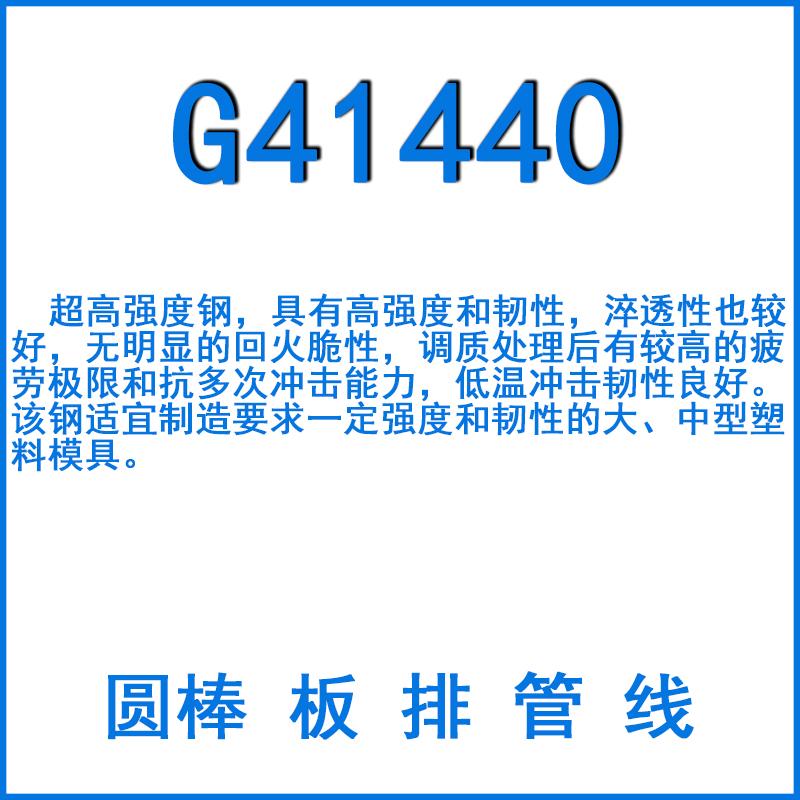 G41440鋼材,此鋼擁有良好的加工性,加工變形微小,抗疲勞性能相當(dāng)好,屬中等等淬透性鋼,G41440熱處理后有較好的強(qiáng)度和良好的綜合力學(xué)性能,工藝性好,成材率高.最高使用溫度為427攝氏度.G41440強(qiáng)度、淬透性高,韌性好,淬火時(shí)變形小,高溫時(shí)有高的蠕變強(qiáng)度和持久強(qiáng)度。用于制造要求較35CrMo鋼強(qiáng)度更高和調(diào)質(zhì)截面更大的鍛件,如機(jī)車牽引用的大齒輪、增壓器傳動齒輪、后軸、受載荷極大的連桿及彈簧夾,也可用于 2000m以下石油深井鉆桿接頭與打撈工具,并且可以用于折彎機(jī)的模具等。