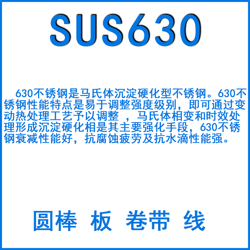 SUS630是馬氏體沉淀硬化不銹鋼,中國(guó)牌號(hào)0Cr17Ni4Cu4Nb。具有高強(qiáng)度,高硬度,較好的焊接性能和耐腐蝕性能。已經(jīng)被大量的推廣運(yùn)用在閥門,軸類及化纖行業(yè)及具有一定耐蝕要求的高強(qiáng)度零部件等。